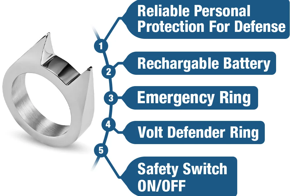 Designed to masquerade as an everyday fashion accessory, our Defender Ring seamlessly combines style with strength. Its unassuming appearance conceals a formidable power, surpassing the capabilities of traditional stun guns. Despite its compact size, this ring is a force to be reckoned with. Keeping you primed and ready for any situation that demands swift action.