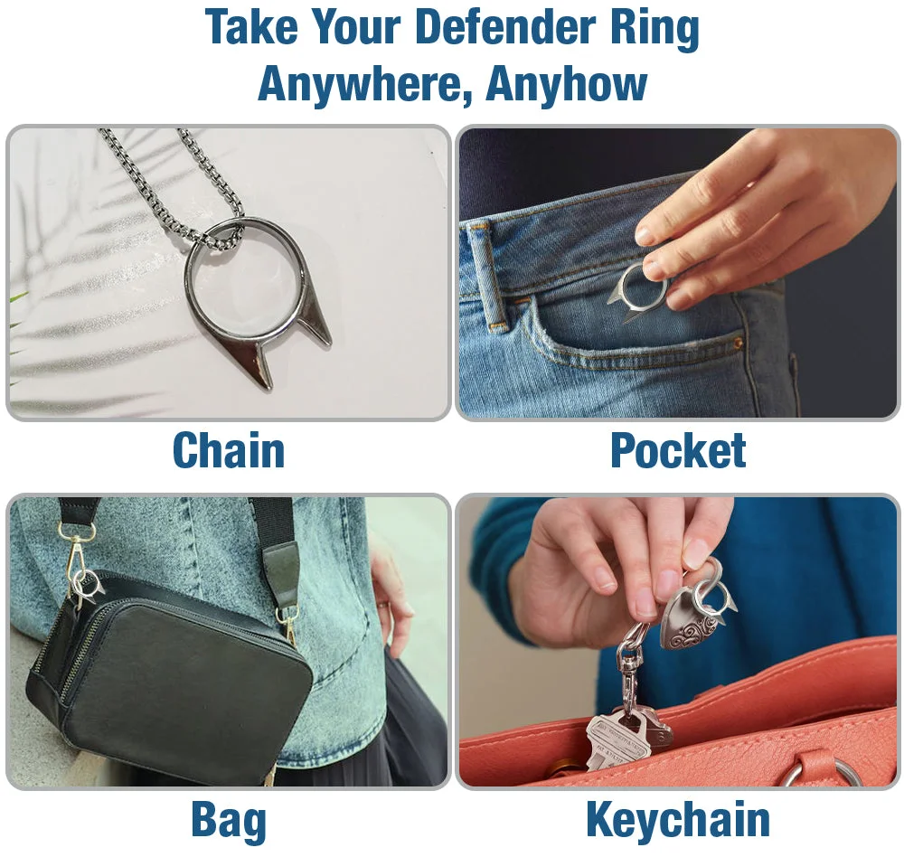 "Venturing into new and unfamiliar places always made me anxious, since I started carrying this ring, my confidence has soared. This discreet tool provides me with a sense of security. It's become my safety net, empowering me to explore without constant worry, knowing I have a reliable defense at my fingertips when needed"